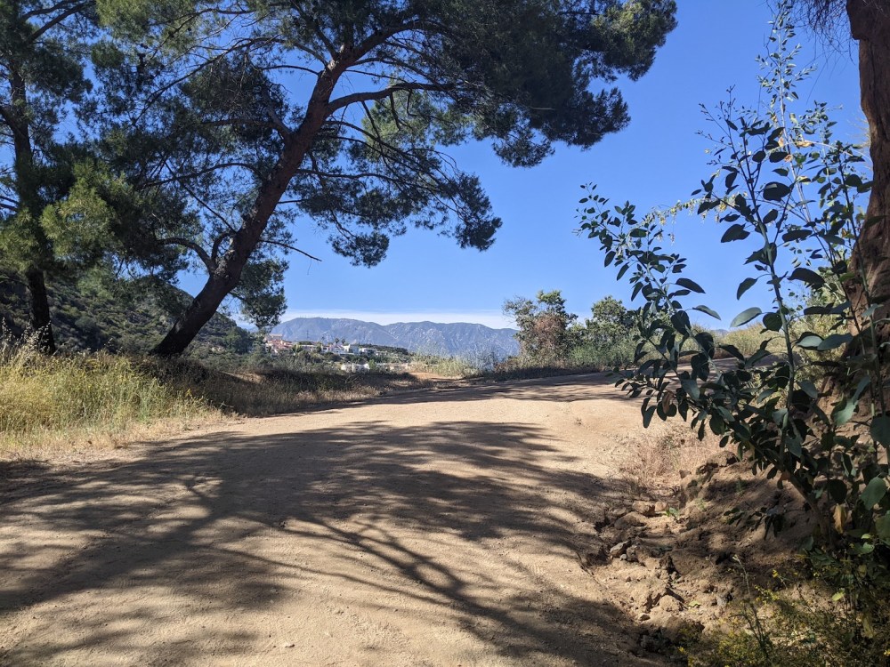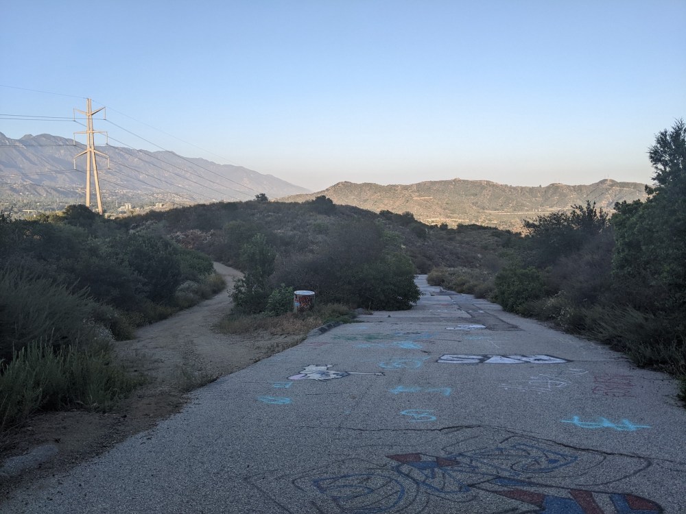 Then retrace your steps down to where Beaudry north and south split off from each other, and continue about 0.3 mile to a little turning off to the left marked by a wooden post. Keep left so you don’t take the undulating ridge but (about 5 minutes after the post) start heading precipitously downhill, until (after another 15 minutes) you come out onto a wide earthy track that almost immediately turns into a tarmaced track that then almost as quickly turns into a road—Oakmont View Drive, to be specific. I think the paved road is what Google has marked as Leviathan’s Teeth trailhead. Then for me it was just a few minutes on suburban roads to get back to where I was staying.
