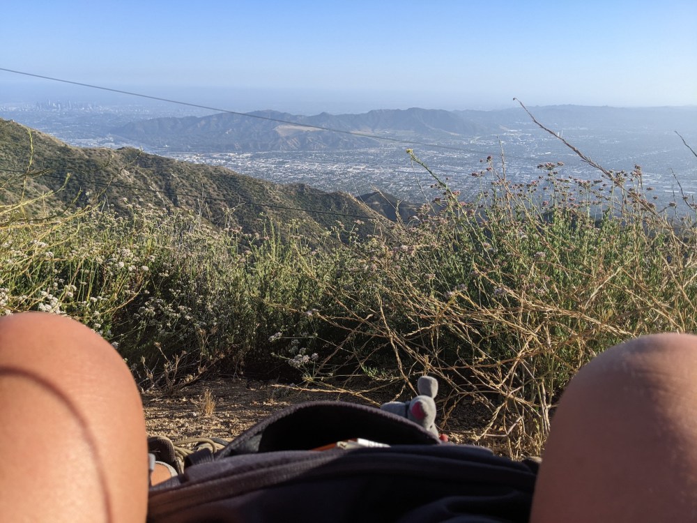 3 May 2022: Yesterday afternoon didn’t quite go to plan: […] at DeBell they were filming some movie, so I went for a mini hike instead, up to the saddle there, the way we came down after the full loop with Simon back in 2017. [I now realize I never wrote that one up!] It was actually very lovely and also very productive. I’d read the survey feedback [I was gathering views on my Design Your Dream Morning course] earlier on, and someone had said, in “what would you change or add”, guided meditation. I found myself musing on that as I walked, and coming up with what at least at the time felt like a really nice satisfying sequence on the balance between accepting and wanting, as applied to “today”. I hope it will seem as good when I type up the long messy notes I scribbled right on top amongst the nodding yellow flowers (must find their name). Then the drive back, all along Mountain St with its hundreds of stop signs, was nice, and a fitting domesticated context for pondering the “want” I’d had really powerfully, up on the hike as the ideas were flowing and this ordinary Tuesday early evening was turning into something rather cool in the way that only LA allows—I want to stay here longer. Can I make that happen?