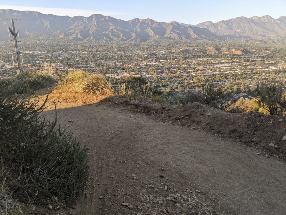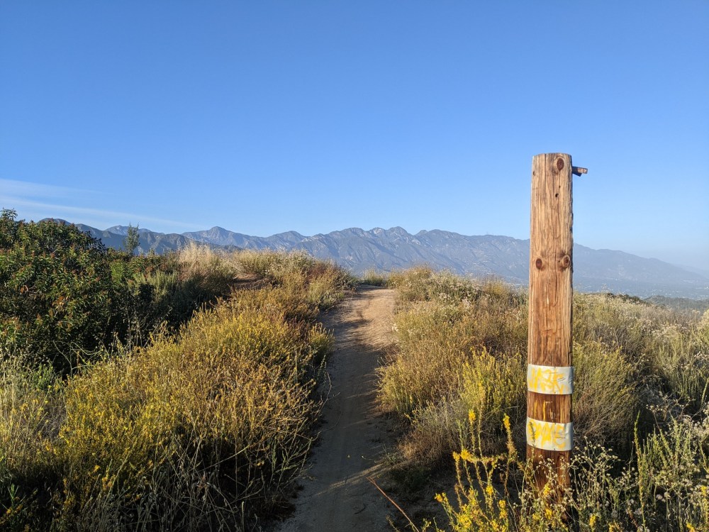 For me the whole loop from Beaudry trailhead to where I joined Oakmont View took almost exactly 3 hours—from 16:20 to 19:20 on a gorgeous late May day. It’s about 5 miles up and then about 2.8 back down to the wooden post and then less than 1 mile back down to the road, so you save maybe 1.5 miles by not wiggling all the way back down the North motorway. Though then if you left your car there, it’s just under a mile to get back there along roads!