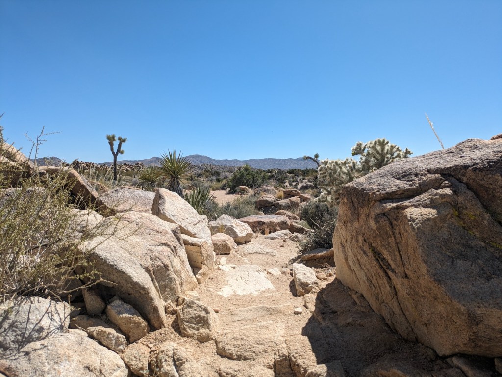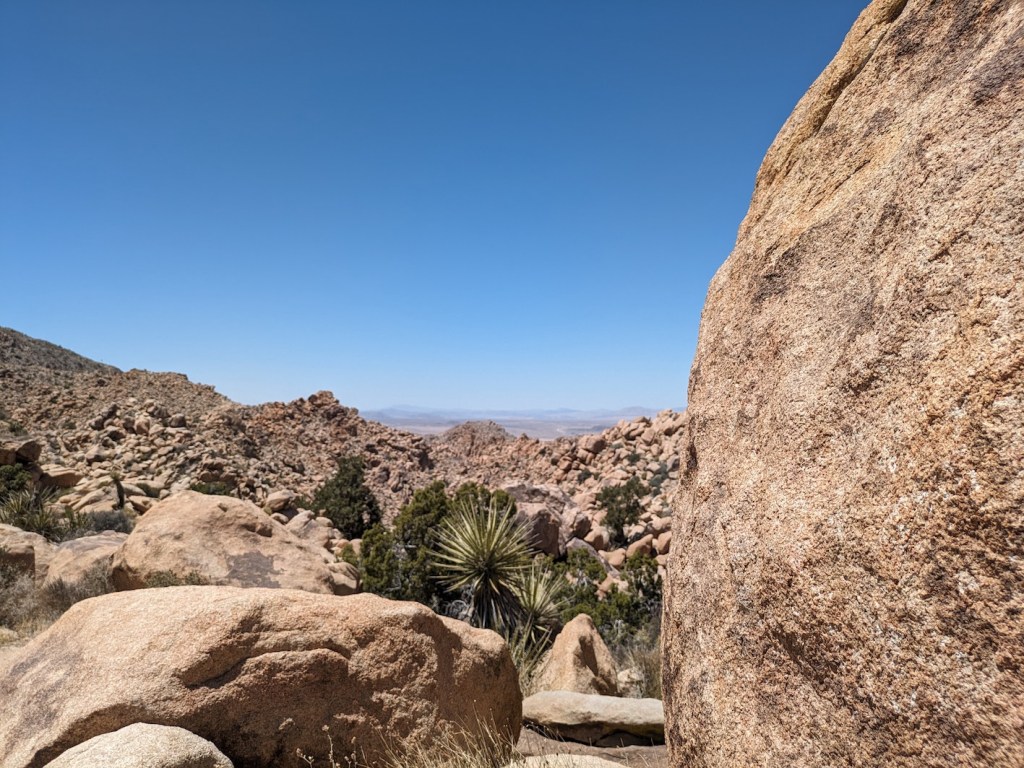 Then in April 2024, I stayed overnight near the park for the first time, with my mother Sue and stepfather Adam en route from a conference in Tucson back to LA. Leaving my stepfather Adam to enjoy photographing cacti and Joshua trees at a more leisurely pace, Sue and I struck off and used our agreed-upon hour to get a little way along the Boy Scout trail, which I’d never tried before.