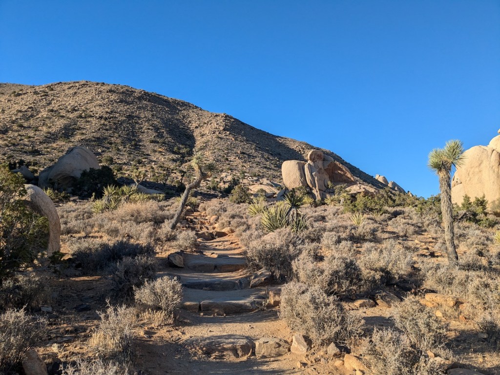 Drive: about 2.5 hours (135 miles) from old town Pasadena, east on the 210, the 10, and the 62, and then a right turn at Joshua Tree onto Park Blvd before the final 18 miles to Ryan Mountain Trail trailhead