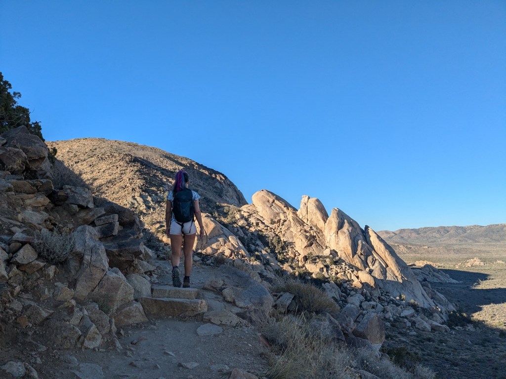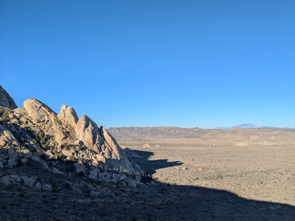 I never knew there were proper peaks within Joshua Tree national park, but James cleverly found us this one. Because it was June, it clearly needed to be an early start, so we got up around first light and were at the trailhead for an 06:50 start. There’s plenty of shade on the west-facing side of the peak, and then the trail cuts through a saddle round to the east before the last stretch up to the summit.